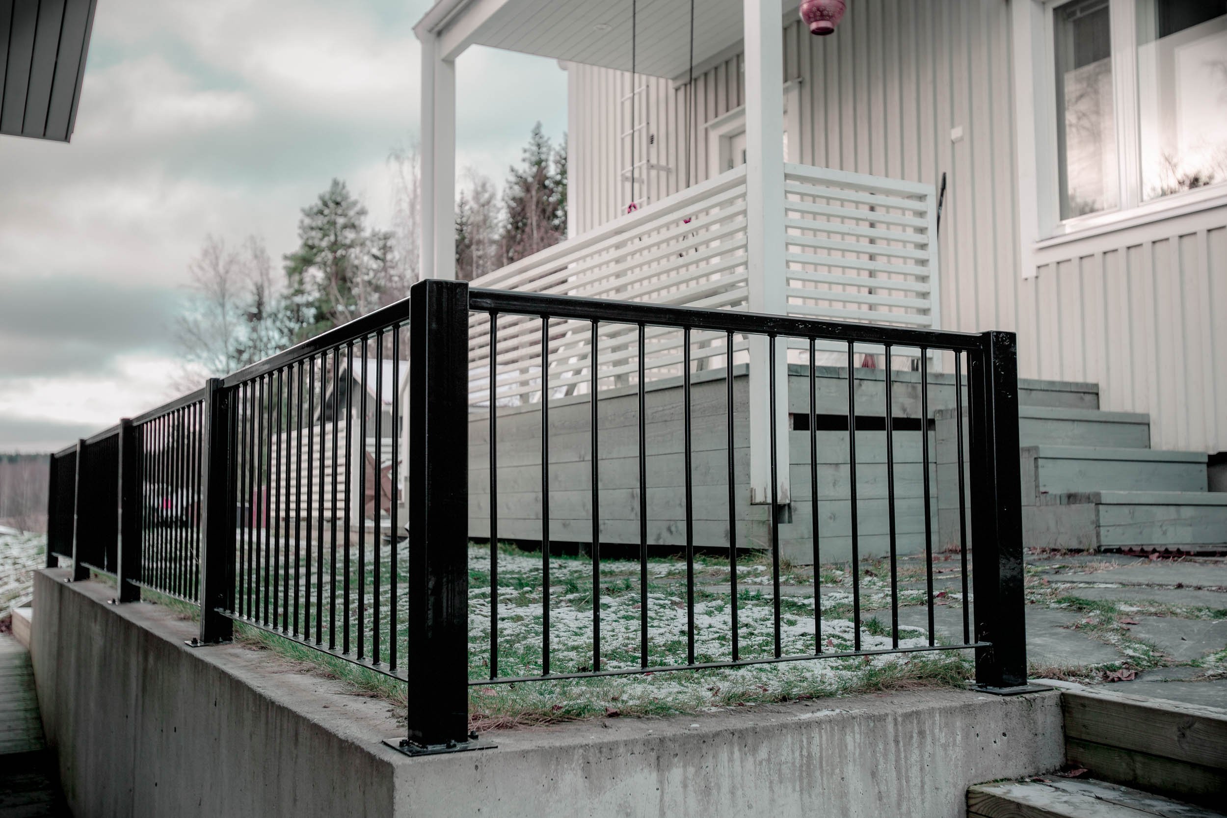 Ajaton ja säänkestävä teräskaide istuu saumattomasti suomalaiseen rakennusmaisemaan.